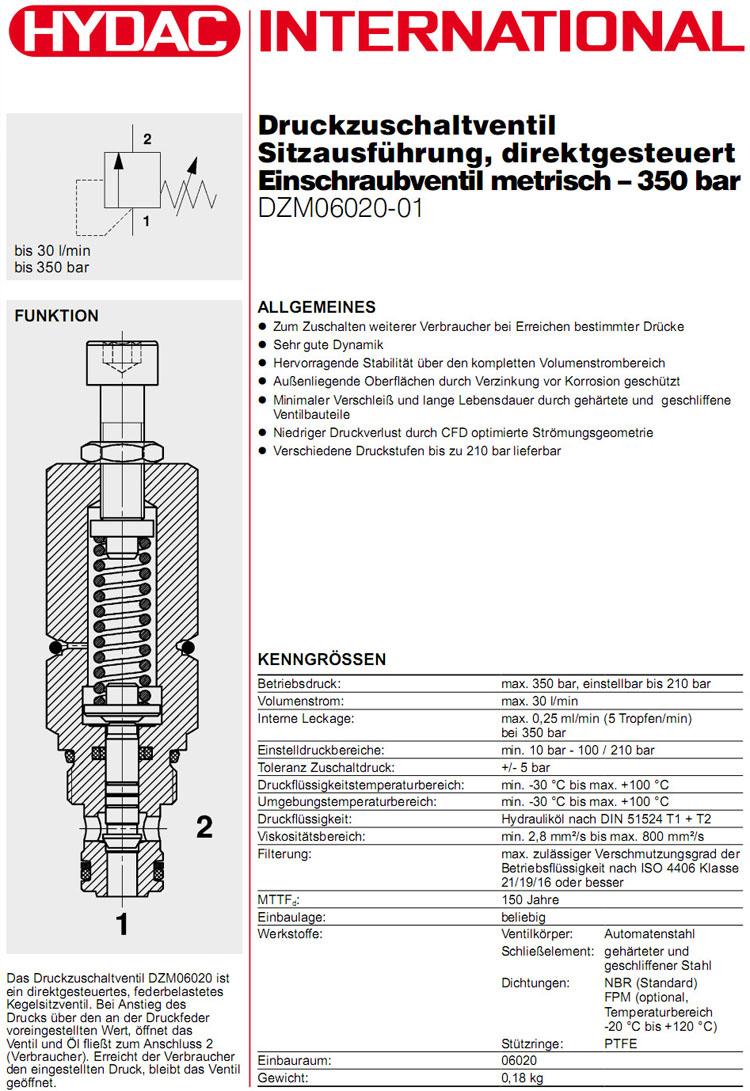 DZM06020-01-C-N-100V,DZM06020-01-C-N-210V,HYDAC壓力順序閥