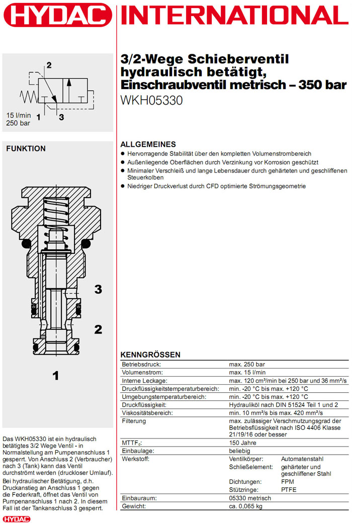 首頁 > 產(chǎn)品&解決方案 > WKH05330-10X,WKH05330-11X,WKH05330-20X,HYDAC二位三通方向滑閥