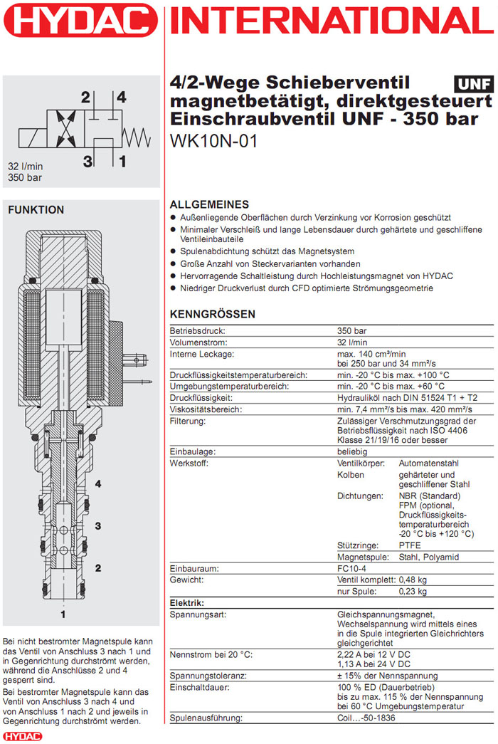 首頁 > 產(chǎn)品&解決方案 > WK10N-01-C-N-24DG,WK10N-01-C-N-230AG,HYDAC電磁4/2方向滑閥