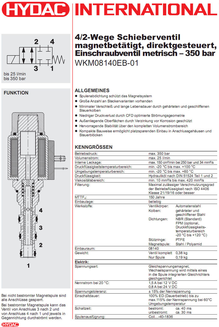 首頁 > 產(chǎn)品&解決方案 > WKM08140EB-01-C-N-24DG,WKM08140EB-01-C-N-230AG,HYDAC電磁4/2方向滑閥