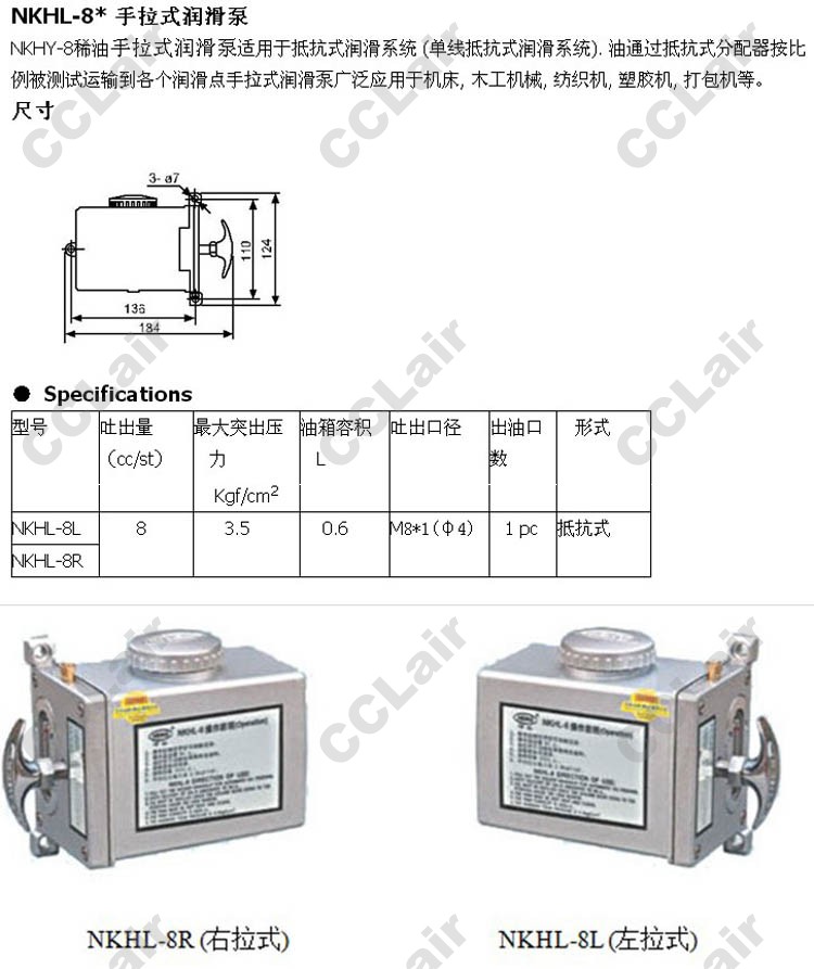 詳細(xì)信息 NKHL-8L,NKHL-8R,手拉式潤滑泵