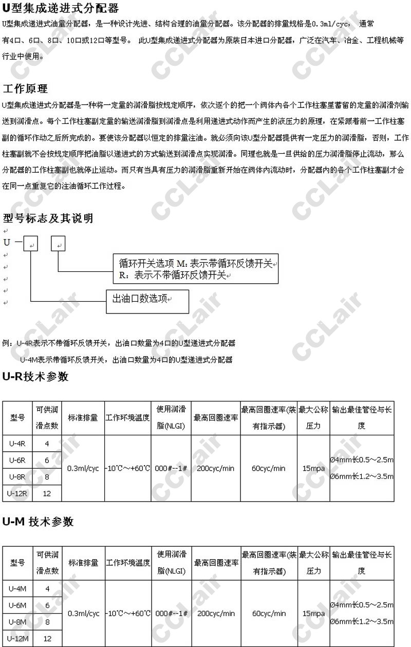 U-4R,U-6R,U-8R,U-12R,U-4M,U-6M,U-8M,U-12M,集成遞進(jìn)式分配器