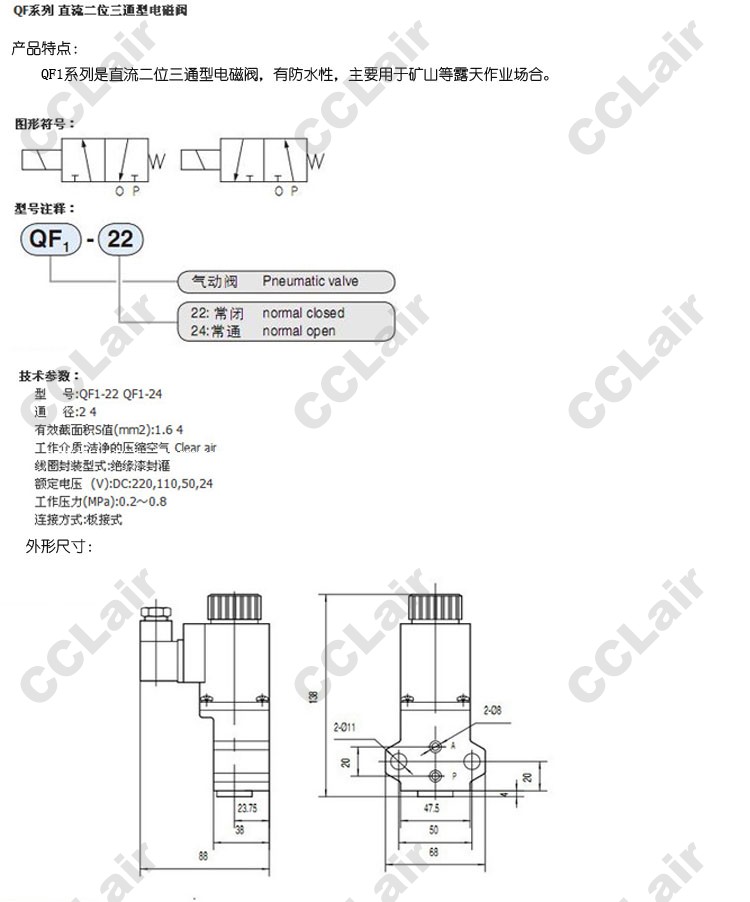 產(chǎn)品: 瀏覽次數(shù):1154QF1-22,QF1-24,直流二位三通型電磁閥