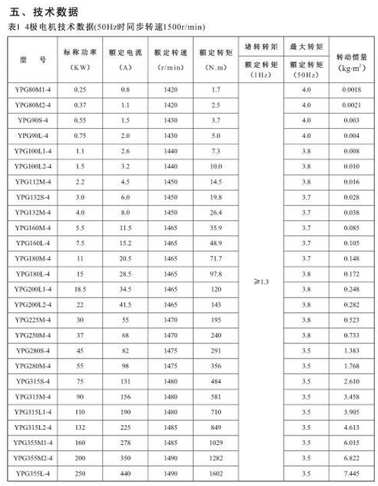 YPG225M-4,YPG250M-4,YPG280S-4,YPG280M-4,YPG315S-4,YPG315L2-4,YPG355M1-4,YPG355L-4,