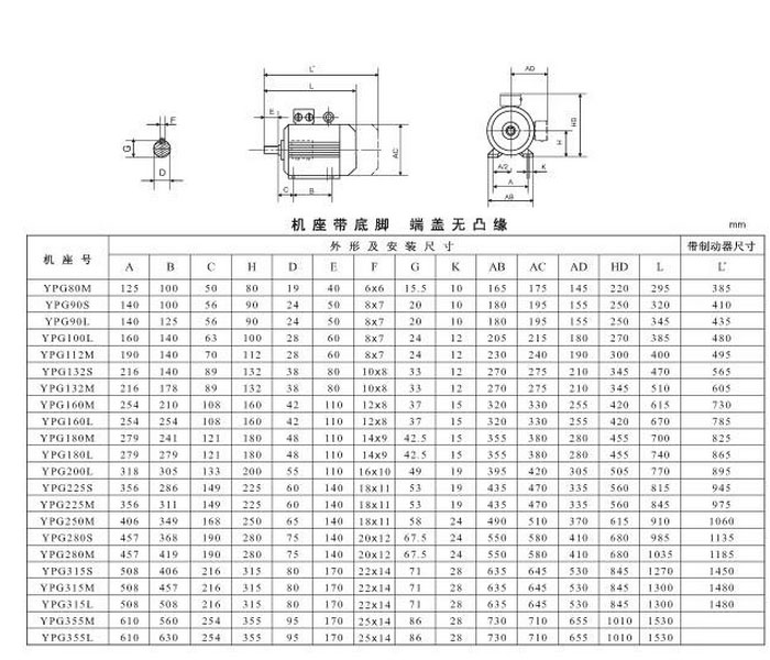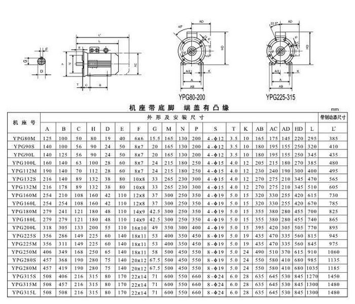 YPG132S-6,YPG132M-6,YPG160M-6,YPG160L-6,YPG180M-6,YPG180L-6,YPG200L1-6,YPG200L2-6,