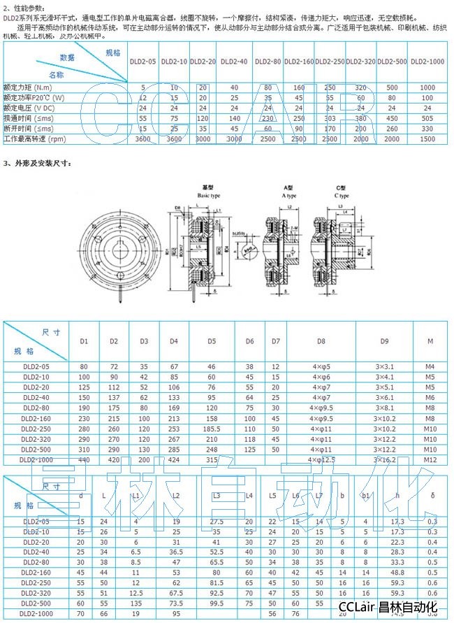 DLD2-05,DLD2-10,DLD2-20,DLD2-40,DLD2-80,單片電磁離合器