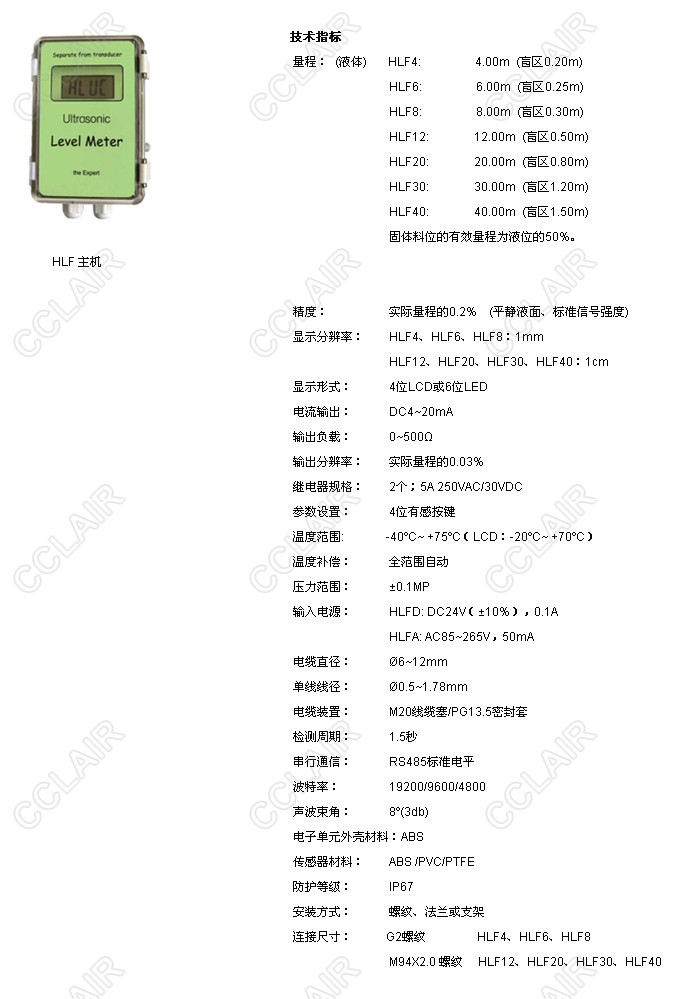 HLF4,HLF6,HLF8,HLF12,HLF20,HLF30,HLF40,HLF分體式超聲波物位計(jì)