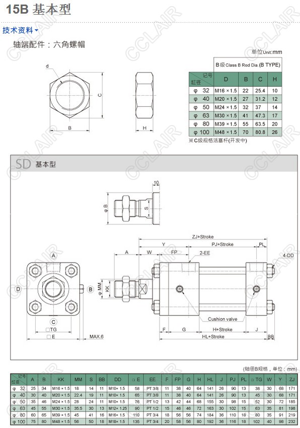 15BD-CA-32M50,15BD-CA-40M50,15BD-CA-50M50,15BD-CA-63M50,15BD-CA-80M50,15BD-CA-100M50,