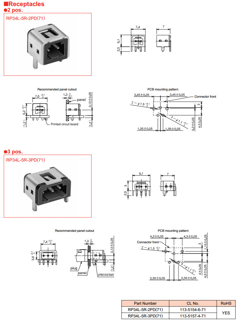 詳細(xì)信息 RP34L-5R-2PD,RP34L-5R-3PD,RP34L-5PA-2SC,RP34L-5PA-3SC,hirose連接器