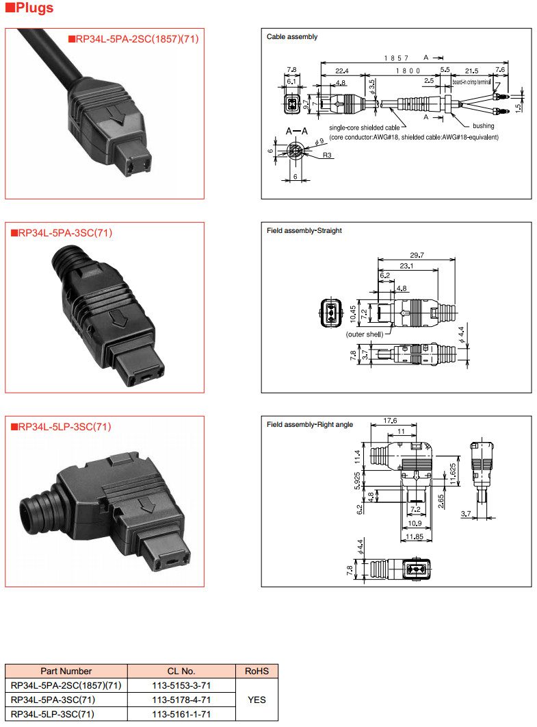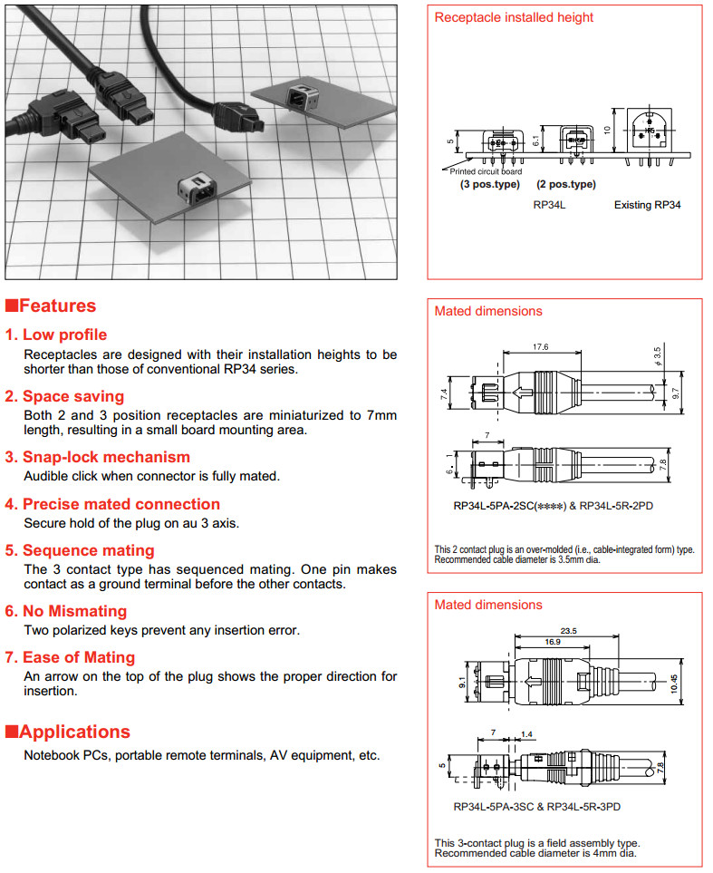 RP34L-5R-2PD,RP34L-5R-3PD,RP34L-5PA-2SC,RP34L-5PA-3SC,hirose連接器