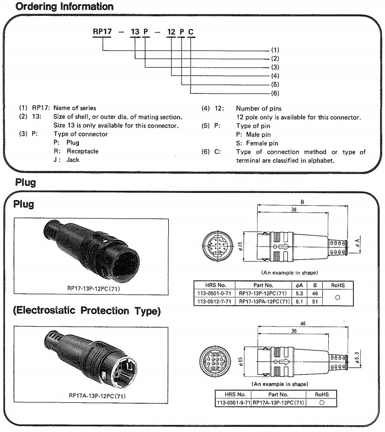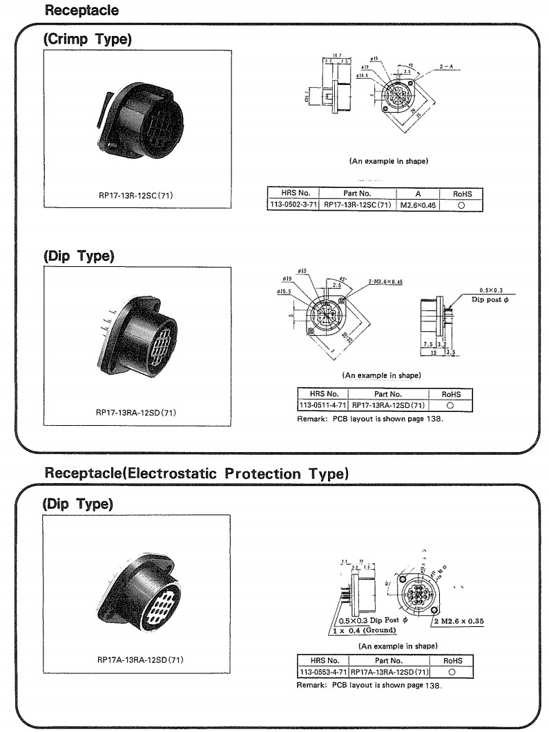 RP17-13P-12PC,RP17-13PA-12PC,RP17-13R-12SC,RP17-13RA-12SD,hirose連接器