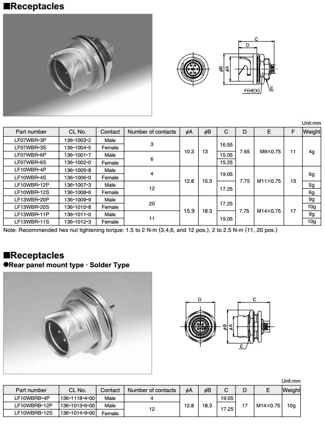 LF10WBJ-12P,LF10WBJ-12S,LF13WBJ-20P,LF13WBJ-20S,LF13WBJ-11P,LF10EBR-4P,