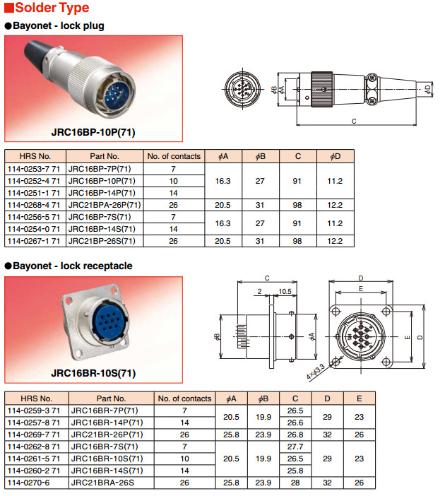 JRC16BP-14S,JRC16BR-7P,JRC16BR-14P,JRC21BR-26P,JRC16BR-7S,JRC16BR-10S,