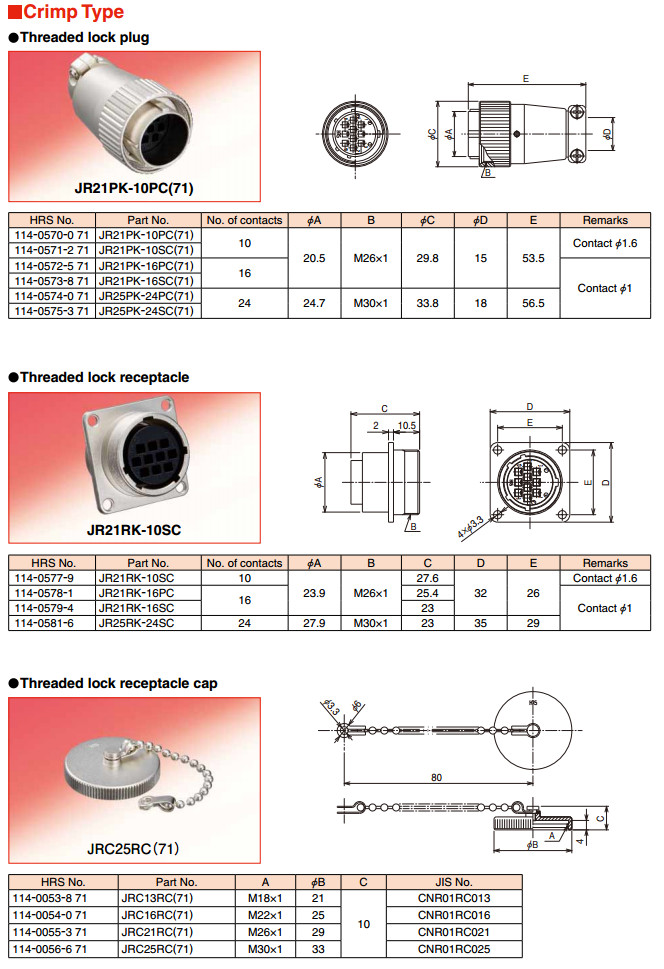 JR16RK-10P,JR21RK-10P,JR21RK-16P,JR25RK-16P,JR25RK-24P,JR25RH-4P,JR13RK-3S,