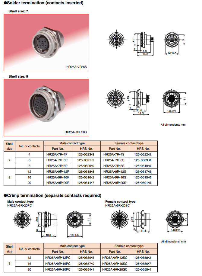 HR25A-9P-12PC,HR25A-9P-20PC,HR25A-9P-12SC,HR25A-9P-16SC,HR25A-9P-20SC,