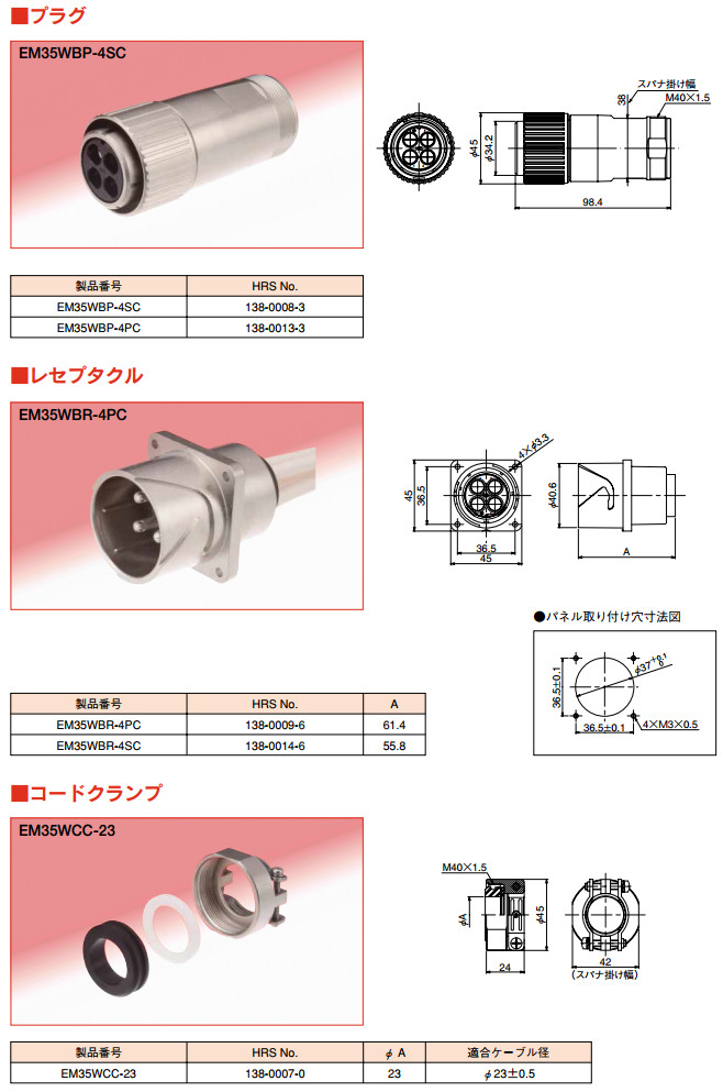 EM35WBP-4SC,EM35WBP-4PC,EM35WBR-4PC,EM35WBR-4SC,EM35WCC-23,hirose圓形連接器