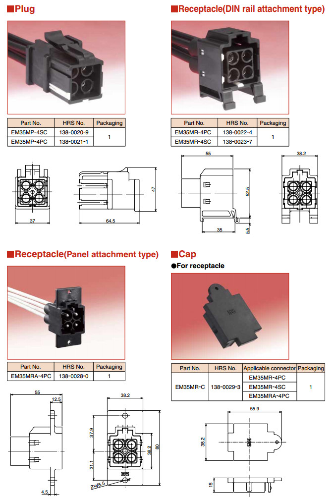 EM35MP-4SC,EM35MP-4PC,EM35MR-4PC,EM35MR-4SC,EM35MRA-4PC,hirose連接器
