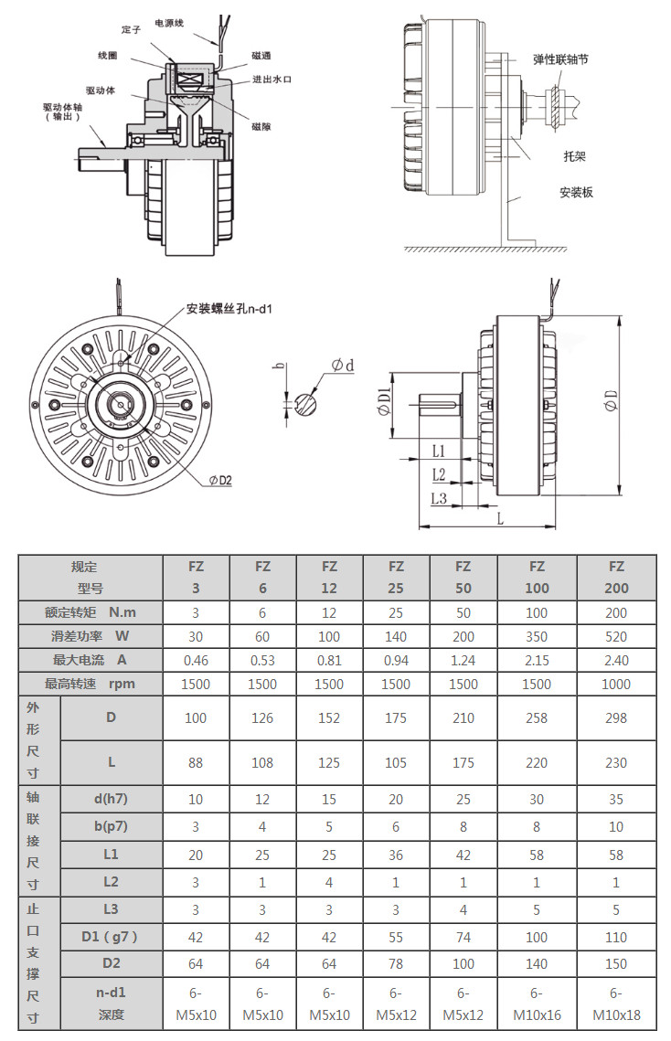 FZ3,FZ6,FZ12,FZ25,FZ50,FZ100,FZ200,單出軸磁粉制動器