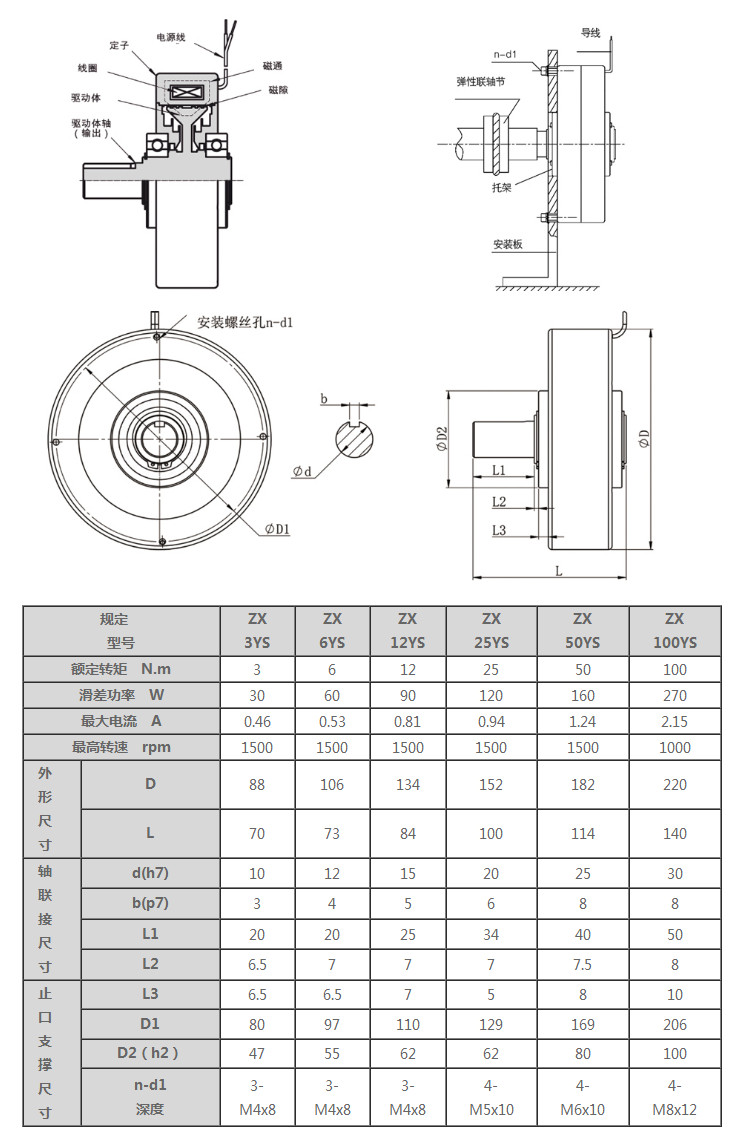 ZX3YS,ZX6YS,ZX12YS,ZX25YS,ZX50YS,ZX100YS,單出軸磁粉制動(dòng)器