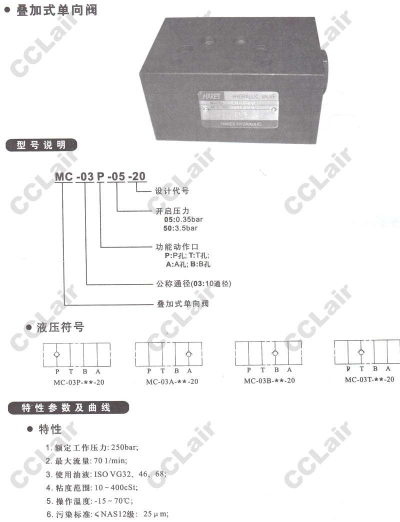 MC-03P-05-20,MC-03A-05-20,MC-03B-05-20,MC-03T-05-20,MC-03P-50-20,MC-03A-50-20,疊加式單向閥