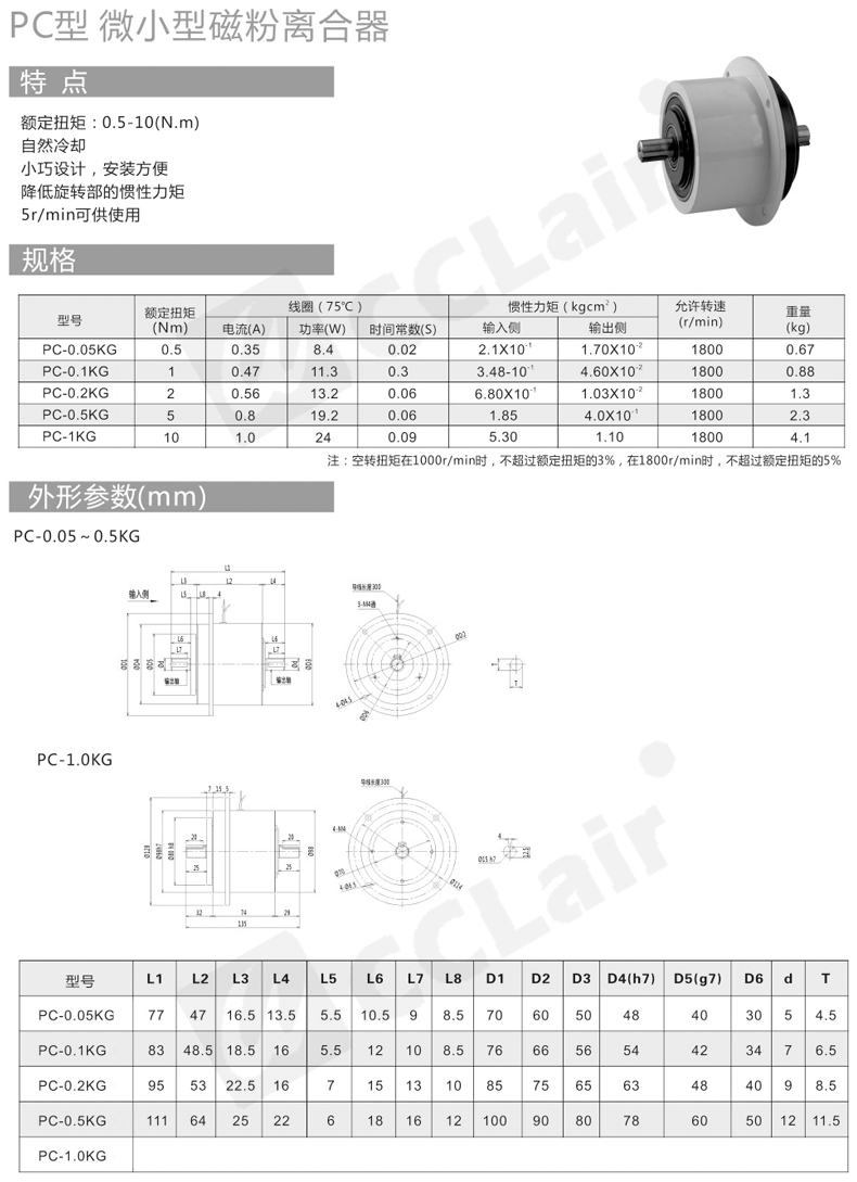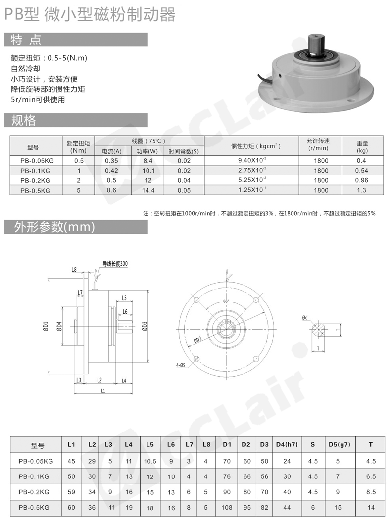 微小型磁粉離合器PC-0.05KG PB-0.1KG PBN-0.3KG
