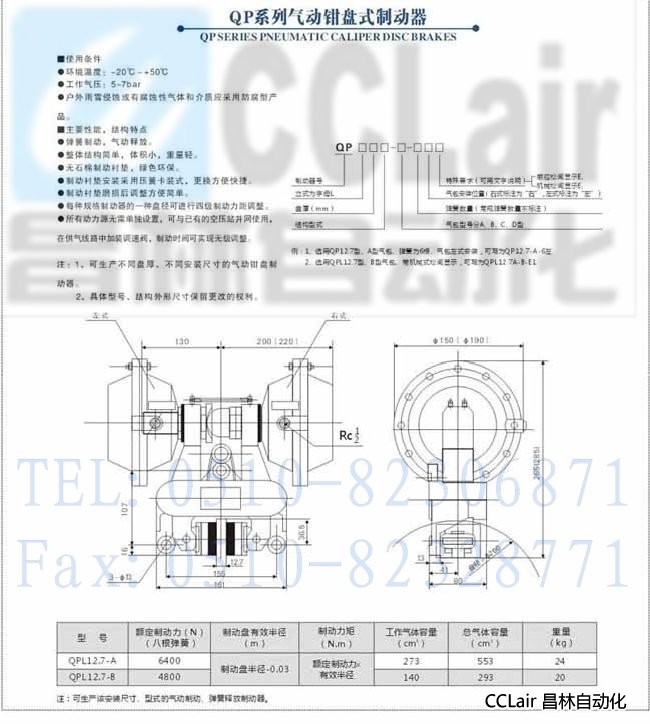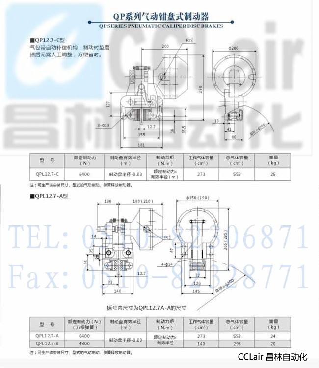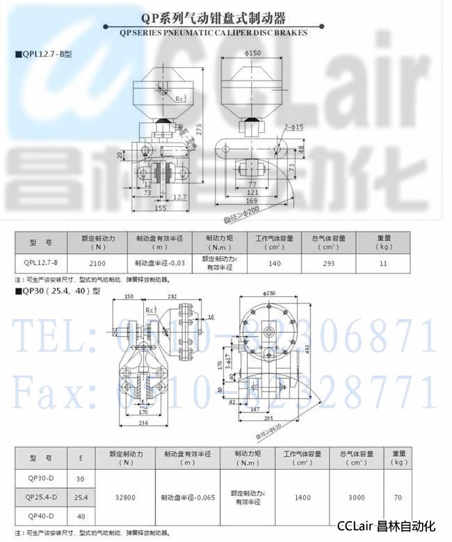 QP30-D,QP25.4-D,QP40-D,QP12.7-C,QP12.7-B,QP12.7-A,氣動(dòng)鉗盤(pán)式制動(dòng)器