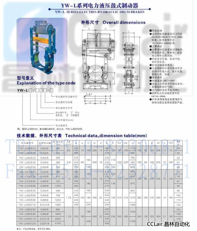 YW-L315/E23,YW-L315/E30,YW-L315/E50,YW-L315/E80,電力液壓鼓式制動器