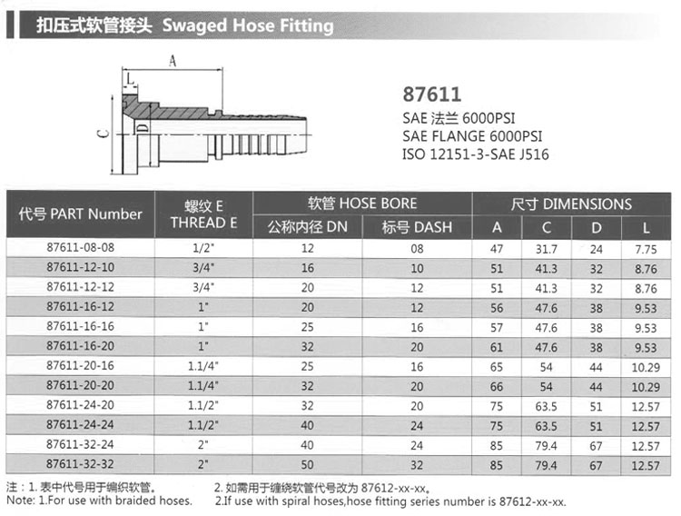 87611-08-08,87611-12-10,87611-16-20,87611-20-16,87611-24-24,87611-32-24,扣壓式軟管接頭