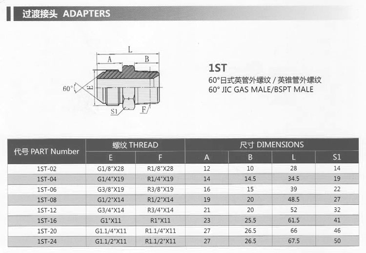 詳細信息 1ST-02,1ST-04,1ST-06,1ST-08,1ST-12,1ST-16,1ST-20,1ST-24,過渡接頭
