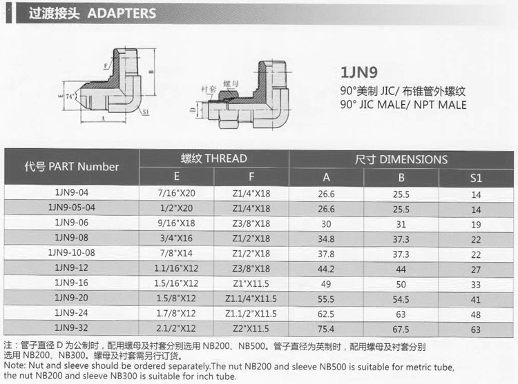 詳細信息 1JN-04,1JN-05-04,1JN-06,1JN-08,1JN-10-08,1JN-12,1JN-16,1JN-20,1JN-24,1JN-32,過渡接頭