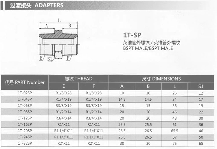 詳細(xì)信息 1T-02SP,1T-04SP,1T-06SP,1T-08SP,1T-12SP,1T-16SP,1T-20SP,1T-24SP,1T-32SP,過渡接頭