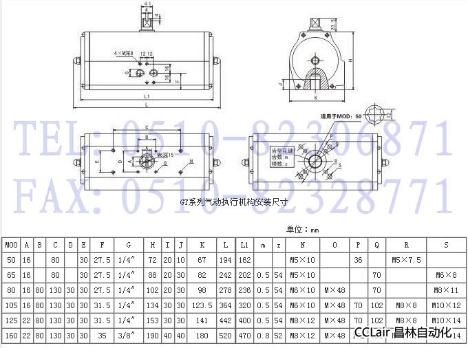 GT系列氣動(dòng)執(zhí)行機(jī)構(gòu)輸出扭矩表 單位:NM
