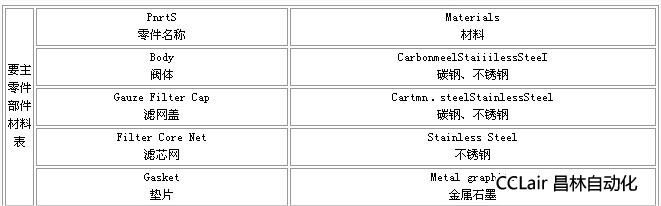 三、自動(dòng)排污過濾器主要零件部件材料表: