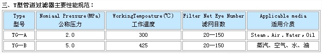 詳細(xì)信息 TG-A,TG-B,管道過(guò)濾器