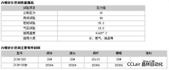 詳細(xì)信息 J13H-320,J13H-320P,內(nèi)螺紋針型閥