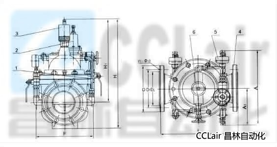 1、球閥2、導(dǎo)閥3、流量調(diào)節(jié)閥4、主閥5、壓力表6、針閥