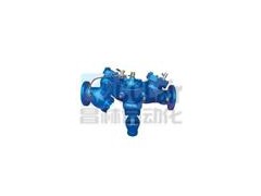 HS41X-A帶過濾防污隔斷閥由兩個隔開的止回閥和一個液壓傳動到泄水閥組成,第一個止回閥閥體內(nèi)裝有過濾網(wǎng)。由于止回閥的局部水頭損失,中間腔內(nèi)的壓力始終低于入水口的壓力。這個壓差驅(qū)使泄水閥處于關(guān)閉狀態(tài),管路正常供水。在壓力異常時,(即出口端壓力高于中堅腔),即使兩個止回閥都不能反向密封,安全泄水閥也能自動開啟將倒流水泄空,并形成空氣隔斷,保證上游供水衛(wèi)生安全。