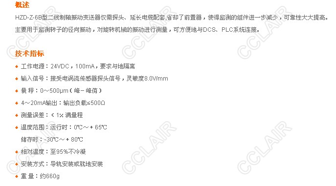 » HZD-Z-6B,兩線制軸振動變送器