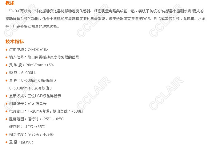 » HZD-B-8,兩線制振動變送器