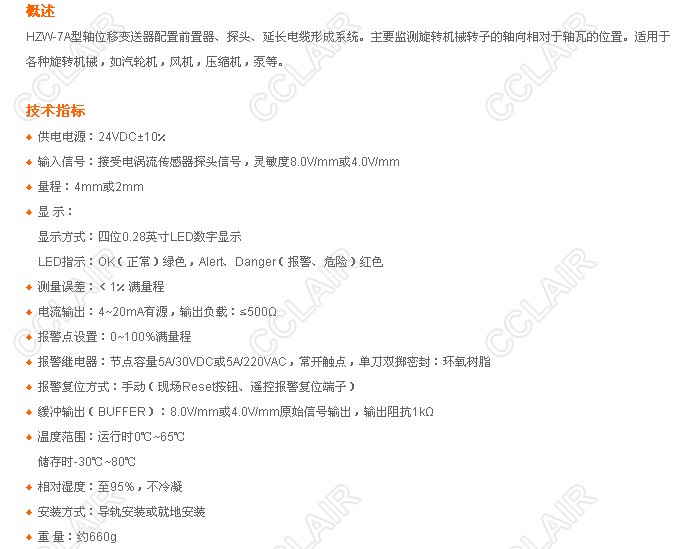 » HZW-7A,軸位移變送器