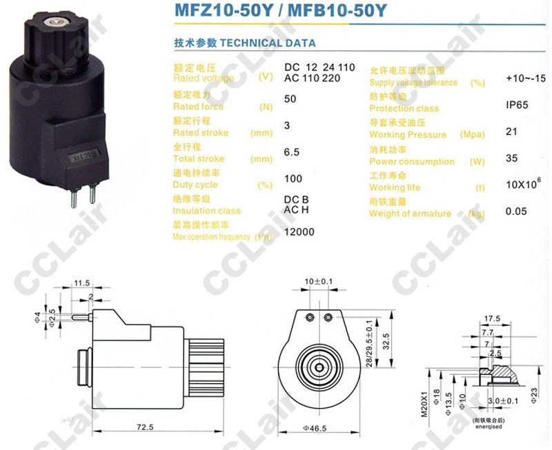 詳細(xì)信息 MFZ10-50Y,MFB10-50Y,方向閥用電磁鐵