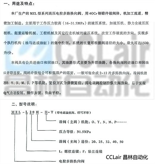 MZL-L20H,MZL-L25H,MZL-L32H,MZL-F40H,MZL-L50H,電控多路換向閥