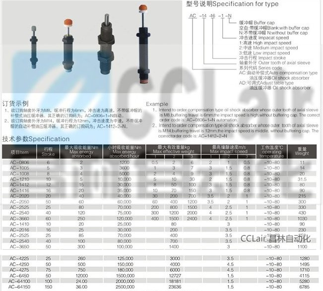 AD1410-1/2/3,AD2020-1/2/3,AD3625-1/2/3/N,可調(diào)式油壓緩沖器