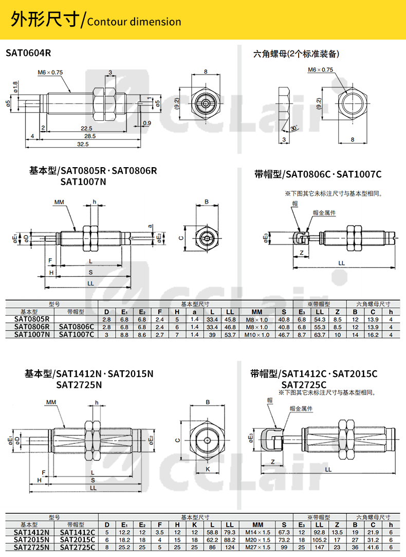 SAT-0604R,SAT-0806R,SAT-0806N,SAT-1007N,SAT-1210N,SAT-1412N,液壓緩沖器,CHELIC氣立可型,SAT不帶緩沖頭