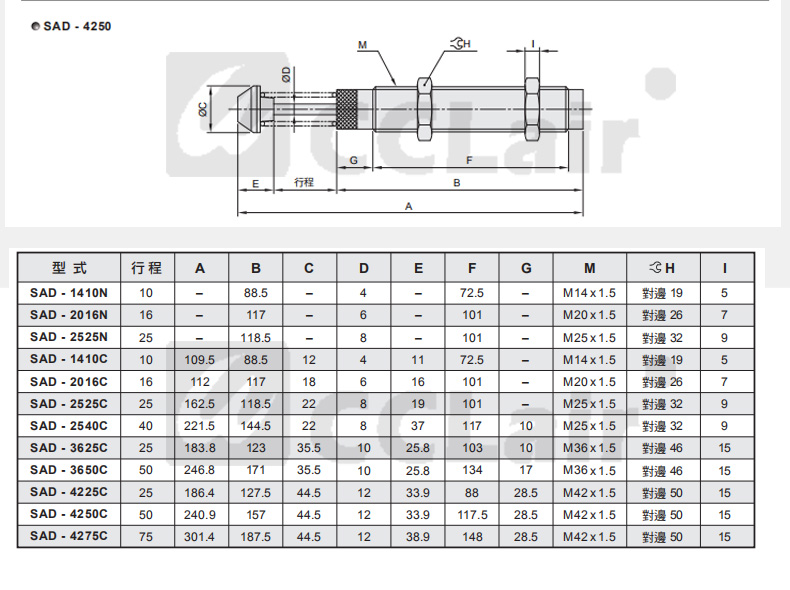 SAC-0806N,SAC-0806C,SAC-1005N,SAC-1005C,SAC-1008N,SAC-1008C,緩沖器,臺(tái)灣氣立可CHELIC型 SAC不可調(diào)式油壓