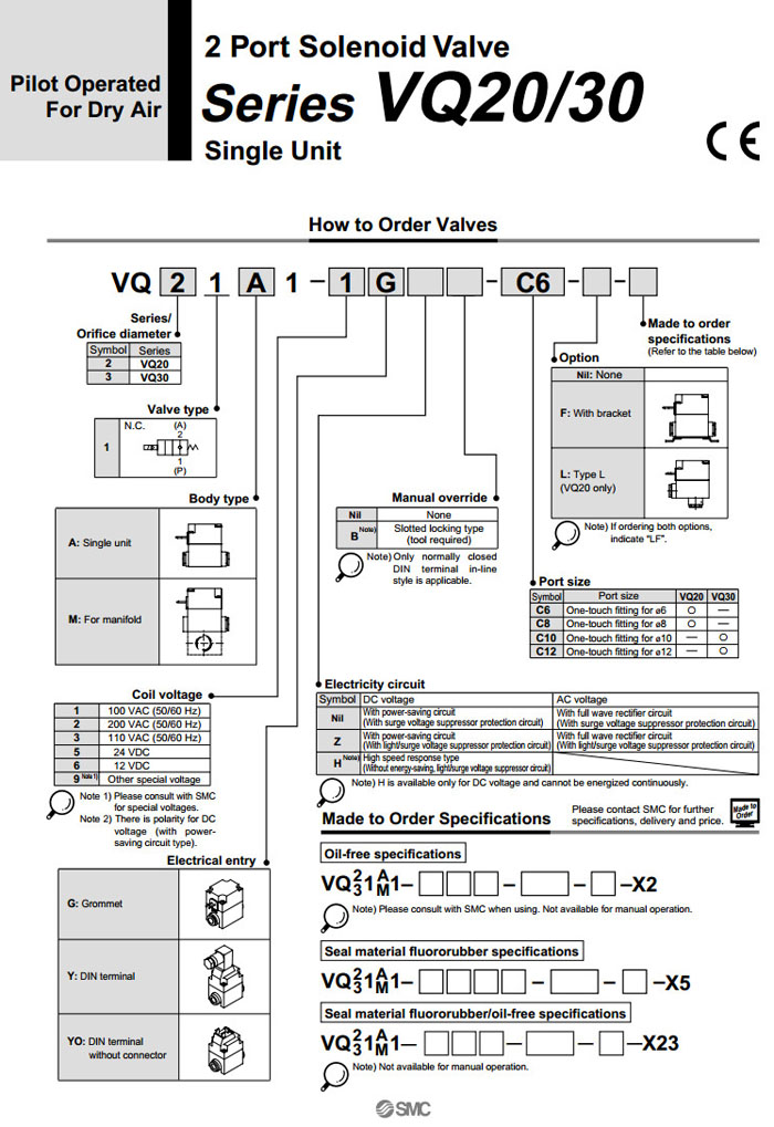 VQ21A1-1G,VQ21M1-1G,VQ31A1-1G,VQ31M1-1G,VQ21A1-1Y,VQ31A1-1Y,SMC先導(dǎo)式2通電磁閥