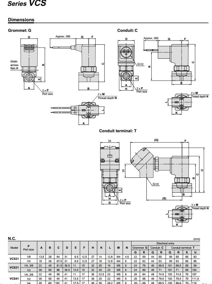 VCS21-1G,VCS21-1C,VCS21-1T,VCS31-1G,VCS31-1C,VCS31-1T,VCS41-1G,VCS41-1C,VCS41-1T,SMC直動式2通電磁閥