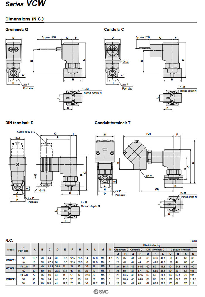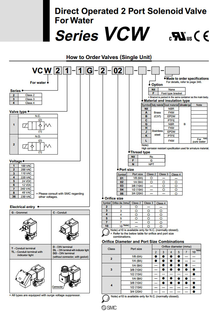 VCW21,VCW31,VCW41,VCW22,VCW32,VCW42,VCW31-36TL,VCW32-36TL,VCW31-1TL,SMC直動(dòng)式2通電磁閥