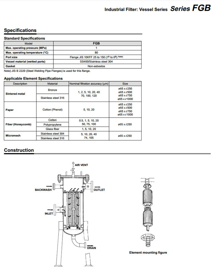 FGBC04,FGBC07,FGBC09,FGBC18,FGBC22,FGBC29,FGBC34,FGBC37,FGBC53,FGBC83,FGBC83D-60,SMC工業(yè)用過濾器