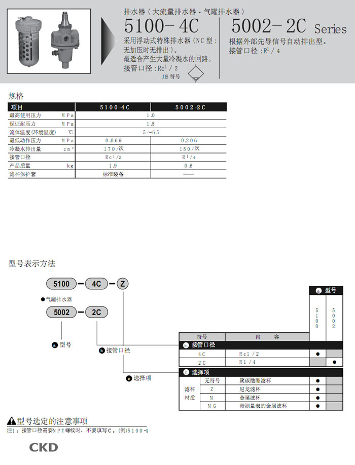 5100-4C,5002-2C,CKD排水器